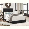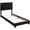 This Erin Upholstered Bed from HomeStock showcases a clean, simplistic design that effortlessly complements a variety of home decor styles. The neutral black faux leather upholstery provides a versatile backdrop, making it easy to integrate into existing spaces. The padded headboard enhances comfort, creating a cozy and inviting bedroom retreat. This bed is designed to accommodate a box spring and mattress, allowing you to customize your sleep setup.