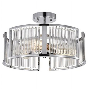 Frey, a Transitional 3-light semi flush mount light features glass crystals, and a chrome finish that will complement many contemporary and modern decors. This piece would look great in the diningroom, hallway and foyer. This fixture takes three 100W E26 bulbs, and is compatible with flourescent, incandescent, and LED bulbs. This fixture is dry listed and UL listed, also recommended for an indoor setting.