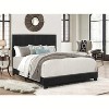 This Erin upholstered bed from HomeStock showcases a clean, simplistic design that effortlessly complements a variety of home decor styles. The neutral black faux leather upholstery provides a versatile backdrop, making it easy to integrate into your existing bedroom aesthetic. Enjoy added comfort with the padded headboard, designed to enhance your relaxation. Built for lasting appeal, this bed is a stylish and functional addition to any space.