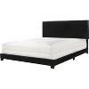 - The bed features a durable construction with a sturdy wood frame, upholstered in a sleek black faux leather, ensuring long-lasting beauty and reliable support for years to come in your bedroom setting.