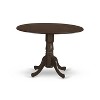 - The complete 5-Piece dining set features two drop-down leaves and four dining chairs, finished in a warm espresso color with comfortable microfiber upholstery seats.