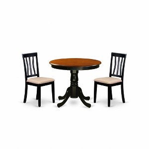 Enhance your dining area with the HomeStock Kitchen Nook Dining Room Set, a practical and stylish choice for apartments, breakfast nooks, or smaller spaces. This complete dining set for two showcases a sleek, black-finished table paired with two ergonomically designed chairs, providing comfortable seating for daily meals and intimate gatherings. Constructed from durable, high-quality rubberwood, this kitchen table set offers lasting stability and a beautiful aesthetic that complements various interior designs. Its compact design makes it an excellent small dining table for two, optimizing space without compromising style or functionality. Enjoy simple assembly and a low-maintenance finish that keeps your dining set looking its best, creating an inviting atmosphere for you and your guests.