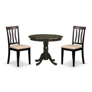 Enhance your dining area with the HomeStock Kitchen Nook Dining Room Set, a practical and stylish choice for apartments, breakfast nooks, or smaller spaces. This complete dining set for two showcases a sleek, black-finished table paired with two ergonomically designed chairs, providing comfortable seating for daily meals and intimate gatherings. Constructed from durable, high-quality rubberwood, this kitchen table set offers lasting stability and a beautiful aesthetic that complements various interior designs. Its compact design makes it an excellent small dining table for two, optimizing space without compromising style or functionality. Enjoy simple assembly and a low-maintenance finish that keeps your dining set looking its best, creating an inviting atmosphere for you and your guests.