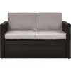 Lounge in comfort on the elegantly designed Palm Harbor Outdoor Set. Crafted with all-weather resin wicker woven over a durable steel frame, this sofa has a lasting style. With comfortable moisture-resistant cushions and deep seating, the Palm Harbor sofa is sure to be your favorite spot to unwind on a warm summer day. A perfect match to the Palm Harbor Outdoor Wicker Series - easily customize your outdoor living space.