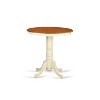 Elevate your dining space with this stylish 5-piece counter height dining set, perfect for kitchens and breakfast nooks. This set includes a round wooden table with a pedestal base and four coordinating chairs, comfortably seating four individuals. The beautiful Buttermilk and Cherry finish, applied to the robust Asian Hardwood construction, creates a versatile neutral aesthetic that complements a wide range of interior design styles. This dining set is a wonderful addition to any home, offering both functionality and a touch of elegance.