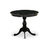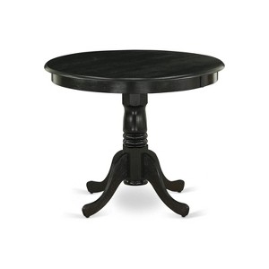 Enhance your dining space with the HomeStock Antique dining table, a stylish and functional addition to any home. This round dining table features a beautiful wirebrushed black finish on both the tabletop and pedestal base, crafted from durable Asian wood. The design offers a modern aesthetic while maintaining a classic appeal, perfect for creating a welcoming atmosphere for family meals or gatherings with friends. Easy to assemble and maintain, this small dining table provides both beauty and practicality, seamlessly blending into various decor styles and offering a sturdy and reliable dining solution.