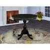 - The table top and pedestal legs feature a wire brushed black color and finish, crafted from quality Asian wood, delivering a classic color combination and a touch of quality design to your dining room, enhancing the overall aesthetic.