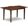 This elegant rectangular dining table offers a Saddle Brown hue, complementing a variety of decor styles. The smooth finish gently reflects light, enhancing any living space and beautifully showcasing dining chairs. Featuring an extendable butterfly leaf, this table easily adapts to accommodate intimate gatherings or larger celebrations. A single bevel edge and rounded design ensure a comfortable feel and make it ideal for smaller kitchens and apartments.