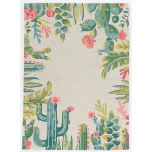 A: The rug has an ivory background with multi-color details and a fun cactus border.