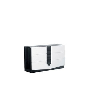 Providing unique contemporary style with plenty of functionality the Hudson dresser is just what you need to liven up your master bedroom. Featuring a high gloss finish with Dark Grey Zebrano details throughout this dresser it will not disappoint. A concealed felt lined hidden jewelry compartment in the center of this item provides a convenient place for storage of your valuable items, this truly is a must have piece for your home. purchase the additional pieces (SOLD SEPARATELY) and Upgrade your sleeping area decor to its full potential.