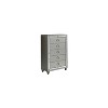 Shown here is the delightful Riley chest, sure to create a charming, elegant look for your sleeping area. This contemporary chest has sleek styling and pleasing accents and the enchanting silver champagne tone with mirror trim accent make coordinating room decor easy and stress-free. This chest is spacious, and has silver-toned knocker style drawer front hardware and bun style feet complement the overall design and contribute to the lovely and sophisticated appearance of this furniture. Quality craftsmanship in every facet of production ensures durability and long-lasting wear. Create the inviting bedroom setting of your dreams by choosing the Riley chest and watch your bedroom area become a haven of comfort and relaxation for your home for years to come.