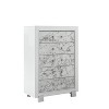 Introducing the luxurious Santorini chest from Global Furniture USA. Presented in an exquisite white that can easily accommodate any room style or color scheme. Features include five spacious drawers, faux marble drawer front detailing, block style feet, and bar style drawer pulls which together make this chest beautifully modern. Created with quality craftsmanship in every facet to ensure durability and long-lasting wear. Look no further than this Santorini chest to accommodate all your needs and upgrade the style of your bedroom.