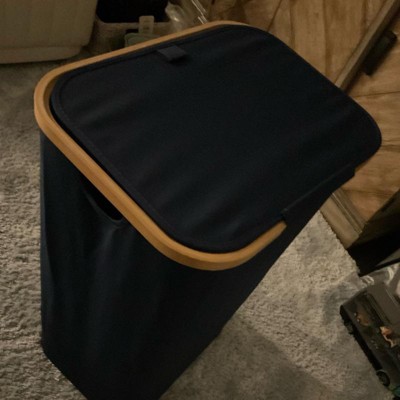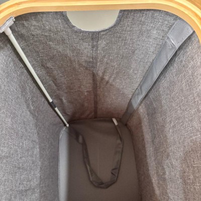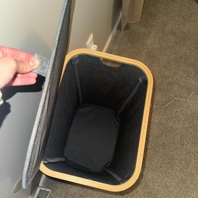 [This review was collected as part of a promotion.] This is the perfect laundry basket for people like me who need a temporary laundry basket when family is around. It folds down to nothing and is so easy to put together. The poles are like camping poles that clip together and fit into the corners to help make the laundry basket sturdy. It’s incredible light. The lid is easy to lift and it has handles to pick it up. I love the easy to clean material