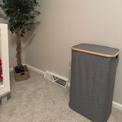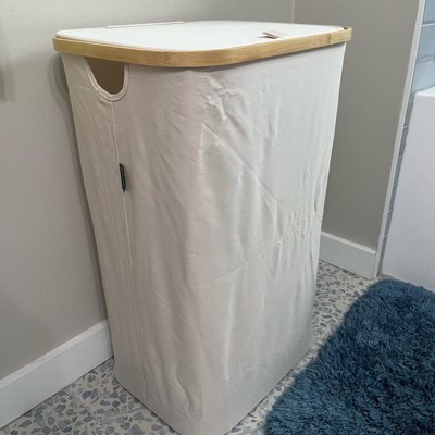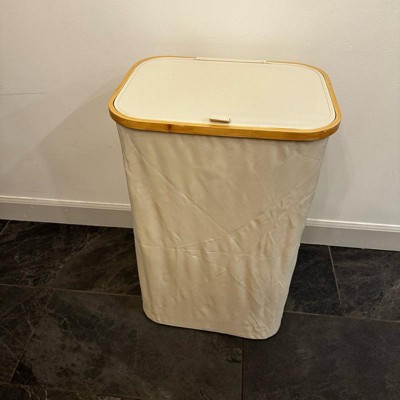 HOMLUX 2.8bu Laundry Hamper with Lid, Bamboo Pull Handles, Internal Support