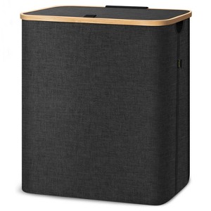 Handle laundry with ease using this HOMLUX 4bu hamper. Featuring a lift-top lid, bamboo pull handles, and a sturdy frame, it offers generous space and a clean, modern look for any room.