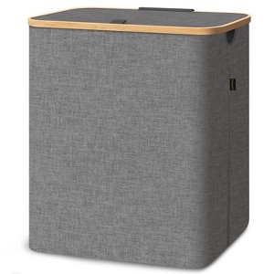 HOMLUX 4bu Laundry Hamper with Lid, Bamboo Pull Handles, Large Capacity, Internal Support