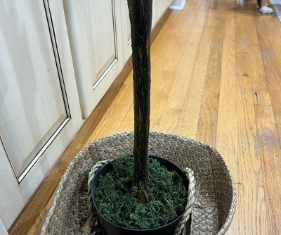 I've received so many compliments on this olive tree! It's hard to believe it's not real. The height is perfect, and I love that I can adjust the branches to my preference. Positioned in my living room, it's become a conversation piece. Plus, the seagrass basket is an elegant touch. For anyone seeking a hassle-free way to introduce some green into their living spaces, this product is a winner!