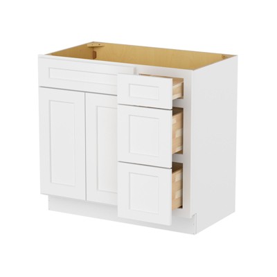 HOMLUX Easy-DIY Combo Bases - Drawers Left 30 in. W x 21 in. D x 34.5 in. H Bath Vanity Cabinet without Top in Shaker White
