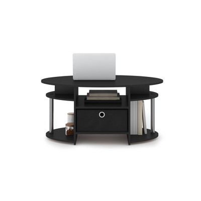 HOMLUX Modern Oval Coffee Table with Side Shelves and Fabric Storage Bin for Living Room