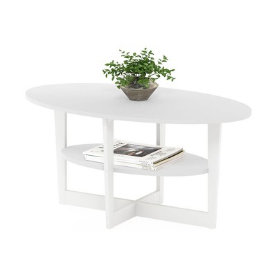 HOMLUX Modern Oval Coffee Table with Side Shelves and Fabric Storage Bin for Living Room