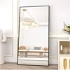 Crafted with an eye for detail and a commitment to quality, the HOMLUX Full Body Mirror offers a blend of functionality and ornate design. Encased in a high-quality aluminum alloy frame that boasts durability and a lustrous sheen, this mirror is a testament to exquisite workmanship. The added shatterproof film on the back ensures that safety accompanies its sleek elegance. With high-definition imaging and high transparency glass topped with a quality silver coating, the mirror provides a faithful reflection of the world around you. Its clean, rectangular vertical frame and tight black alloy edging make it an ideal match for both retro and contemporary interiors. The 58 x 18 inch size caters to all your full-length viewing needs, ensuring that you can check your appearance from every angle before stepping out. Easy to install and designed to save space, this mirror can be stood on the floor, hung on the wall, or leaned against it, making it a versatile and indispensable addition to your living space.