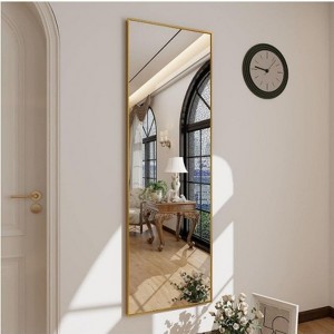 The HOMLUX Full Length Door Mirror marries functionality with sleek design, providing a full-body view with its wide variety of sizes available for selection. The thin frame not only gives the mirror a modern appearance but also maximizes the reflective surface area. Crafted for durability and safety, the mirror features shatterproof glass set in a robust aluminum alloy frame. Its refined edge design enhances the visual appeal, making it more than just a mirror; it's a piece of art. Designed to be space-efficient, this mirror is an excellent choice for smaller living areas, adding depth and light without occupying much room. Safety is paramount with the inclusion of an explosion-proof film on the back, which keeps shards in place should the glass break, protecting your household. Whether mounted on a door, hung on a wall, or leaned for a freestanding look, this mirror is versatile and easy to install, ensuring it's not only a focal point of decor but also a testament to convenience and safety.