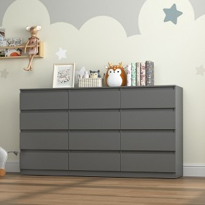 - This bedroom dresser features 12 spacious drawers, providing a dedicated spot for all your daily items and accessories. The clean surface keeps everything neatly organized. The top surface is ideal for displaying paintings, lamps, or decorative items.