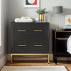 - Crafted from metal with a gold finish and particle board with beautiful wood veneer, this piece is sturdy and durable. Leg pads prevent the lateral file cabinet from shaking on uneven ground.