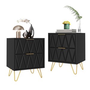 Introducing the set of 2 wood nightstand, a multifunctional locker that adds elegance and sophistication to your space. This versatile piece can be used as a bedside table in the bedroom or as a living room sofa side cabinet, office side cabinet, or powder room storage cabinet. Featuring an exquisite and special pattern design, this bedside table has a three-dimensional appearance that adds depth and character to any room. Its modern simplicity, soft color, and metal legs and handles bring a touch of modernity and sophistication to your living space.No matter where it is placed, it is sure to enhance the overall aesthetic of your home.