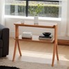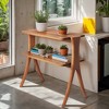 - Engineered with MDF shelves and solid rubber wood legs, this tall side table ensures exceptional stability and durability.