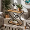 - Warm brown wood-grain top contrasted by matte-black metal creates an elegant two-tone finish that elevates living rooms, bedrooms or home offices with sophisticated vintage charm.