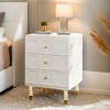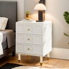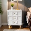 - The nightstand boasts a chic white finish complemented by opulent gold detailing on the handles and acrylic legs, creating a stunning blend of modern elegance that enhances any room decor.