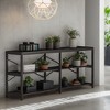 The combination of metal and wood with X-shaped backing gives a rustic aesthetic. 70.9”x11.8” shelving is perfect for your entryway, hallway, bedroom, living room, and home office. Keep clutter out of sight while lending a touch of industrial-chic look and rustic appeal to your space. You can use this clean-lined table as a bar table, sofa table behind your couch, an entryway console table, or accent table. The versatile appearance makes it perfect to be a TV stand or a long horizontal bookshelf. Meet all your display and storage needs.This console table featuring three open shelves offers ample space for convenient storage and display, saving space and making your home tidy. It is long enough to stretch your couch and set down books, plants, frame photos, and home decorations.