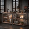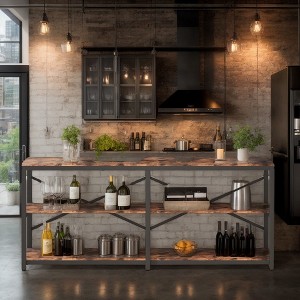 The combination of metal and wood with X-shaped backing gives a rustic aesthetic. 70.9”x11.8” shelving is perfect for your entryway, hallway, bedroom, living room, and home office. Keep clutter out of sight while lending a touch of industrial-chic look and rustic appeal to your space. You can use this clean-lined table as a bar table, sofa table behind your couch, an entryway console table, or accent table. The versatile appearance makes it perfect to be a TV stand or a long horizontal bookshelf. Meet all your display and storage needs.This console table featuring three open shelves offers ample space for convenient storage and display, saving space and making your home tidy. It is long enough to stretch your couch and set down books, plants, frame photos, and home decorations.