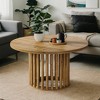 Hommoo 31.5" Solid Wood Round Coffee Table, Cylindrical Hollow Base Center Tea Table