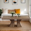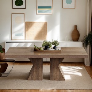 Its elegant simplicity, with a rectangular tabletop balanced on a thick wooden base, seamlessly fits into any decor, with a rich, rustic brown texture that brings a cozy farmhouse feel to your living space. Versatile in style, it makes a statement whether as a focal point or nestled between your sectional couch.