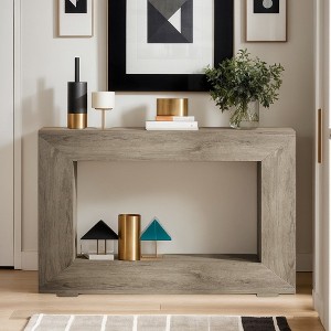 - Inspired by farmhouse design, this wood grain console table features a vintage yet simple appeal that adds warmth and charm to your home decor.