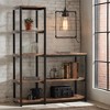 - Built with a heavy-duty metal frame and MDF particle board, this bookshelf combines durability with a vintage simplicity look.