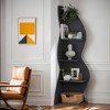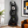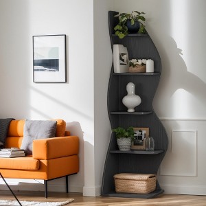 - This corner shelf offers five shelves for your books, photo frames, plants, and ornaments. Its compact shape optimizes unused corners without occupying too much floor space.