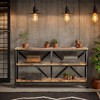 - Minimalist frame design lends industrial flair to this industrial entryway table. Versatile appearance makes this modern console table perfect to be a TV stand, long horizontal bookshelf or black sofa table with storage.