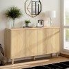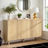 - With a unique semicircle pattern on the door fronts, the sideboard cabinet blends timeless design with contemporary style.