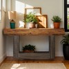 The farmhouse console table combines rustic charm with modern functionality, featuring a striking tabletop and vintage U-shaped base. Thanks to its handy lower shelf that accommodates larger decorative items or vases. Perfect for use as a console table, sofa table, tea table, or entry/hallway table, it adds both charm and utility to any room.