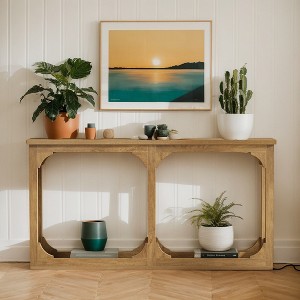 Tuck this 63" farmhouse console behind the couch or greet guests in the entry—its wood-grain top and crisp white frame add rustic charm while the lower shelf swallows baskets and shoes. Built from thick MDF, it stays level on any floor and assembles in 20 minutes so you can style and store the same day.