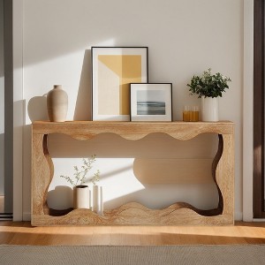 The farmhouse console table combines timeless charm with modern functionality, featuring a classic farmhouse design and elegant flowing lines. With its dual-tier design, this versatile table is perfect for displaying ornamental pieces, plants, or lamps, adding a touch of elegance to any room while keeping your space organized.