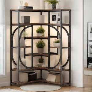 Hommoo 7-Shelf Corner Bookshelf, L-Shaped Bookcase Display Rack