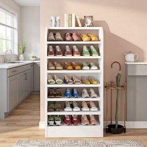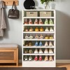 This premium shoe stand combines durability and elegance, crafted from high-quality E0 particle board for robust support. Its finely polished wooden surface with water-proof and wear-resistant white paint adds a touch of modern charm to any room. Promoting air circulation, its open shelving prevents odor buildup and saves space, making it ideal for hallways, entryways, and more.