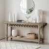 - Infused with farmhouse style, this long sofa table features clean lines, making it easy to clean and ensuring seamless coordination with other industrial pieces in your home.