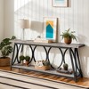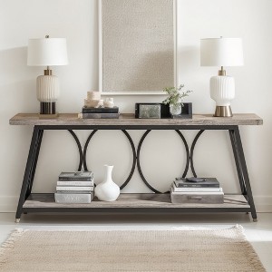 Transform your living space with the console table, where rustic wood finishes meet modern metal elements to create an industrial chic look that complements any decor. This 70.9" long table offers ample display area for your favorite items and additional storage below, helping you keep your space organized and clutter-free.