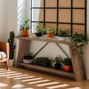 This industrial sofa table combines old-world charm with contemporary flair, making it a versatile addition to any home or office. Its rustic design harmonizes with various décor styles and offers multi-purpose functionality as an entryway console table, living room sofa table, or sleek TV stand.