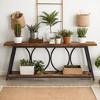 The vintage rustic console table combines a charming wood finish with black metal elements, creating an attractive industrial look that complements any decor. With its generous 70.9" long tabletop and additional bottom shelf, this table offers ample storage for your favorite collectibles and everyday essentials. Perfect as a sofa table, entrance table, or hallway console, it adds both functionality and style to your home.